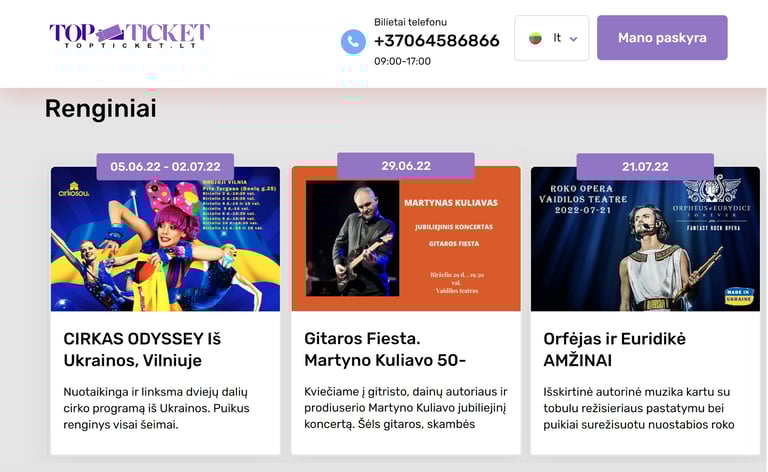 Приняв участие в партнерской программе сайта Topticket.lt, вы можете рассказать посетителям вашего сайта обо всех концертах и спектаклях, а заодно и заработать на каждом заказе.